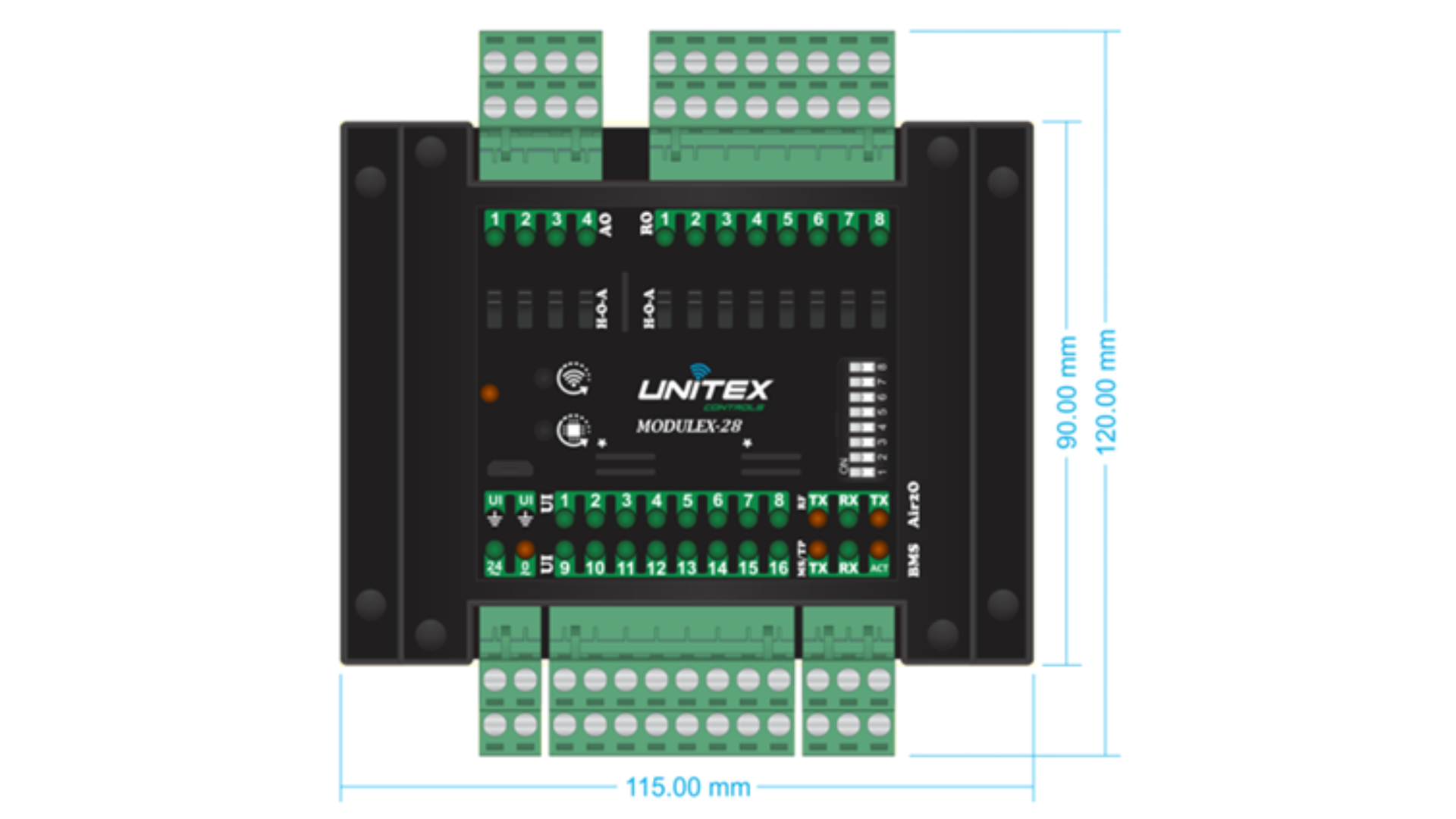 This device is a special I/O module that has 28 I/O in total with the ability to connect it using: 1- Modbus Router 2- BACnet Gateway 3- IOT Cloud via Blynk server The jumper on TOP card (J11-MODE) select the Modbus Router or BACnet Gateway function with IOT Blynk enabled.